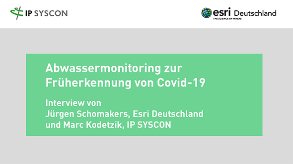 Unser Geschäftsführer Marc Kodetzki und der CEO von Esri Deutschland Juergen Schomakers unterhalten sich in diesem Video über die Anfänge der Pandemie, die dadurch bedingten Veränderungen im Arbeitsalltag, das gemeinsame Projekt zum Abwassermonitoring als Frühwarnsystem für Covid-19 sowie die langjährige Partnerschaft von Esri und IP SYSCON.