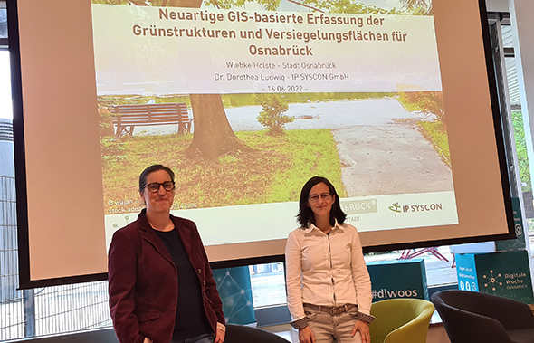 - Neuartige GIS-basierte Erfassung der Grünstrukturen und Versiegelungsflächen für Osnabrück (Dr. Dorothea Ludwig - IP SYSCON GmbH, Wiebke Holste - Stadt Osnabrück) Das Video zum Vortrag finden Sie unter: https://digitalewoche-osnabrueck.de/mediathek-16-06-2022-tag-2/
