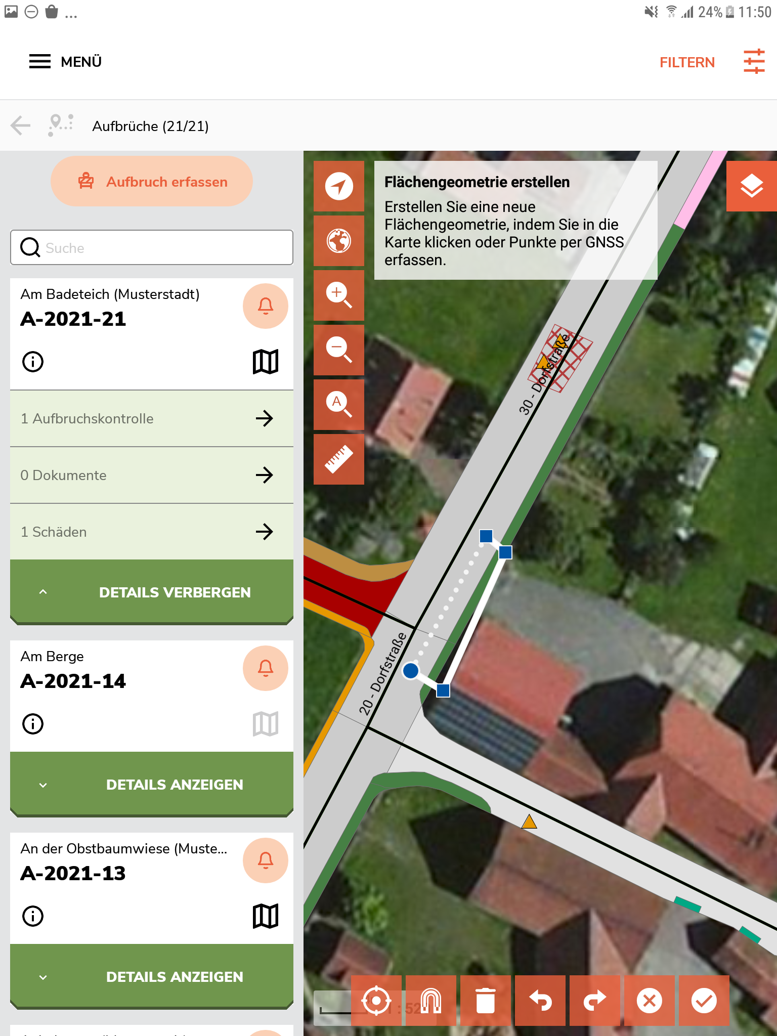 - Kombination aus umfangreicher Sachdatenbank und Kartenkomponente zum effizienten mobilen Arbeiten ohne Netzabdeckung