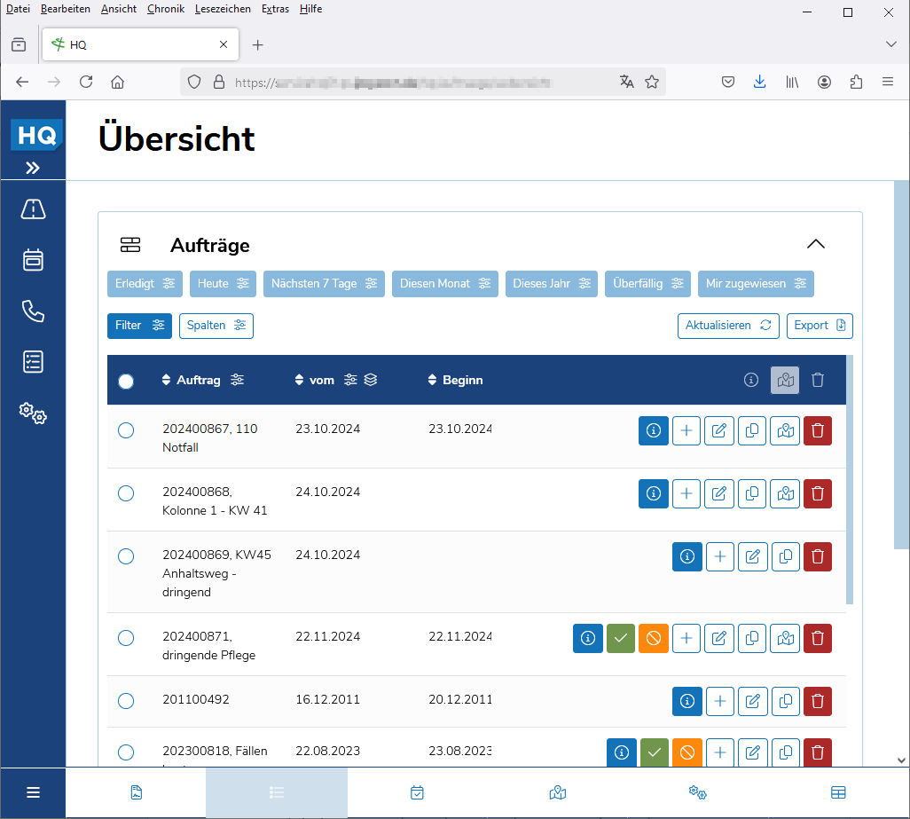 Die Web-Anwendung Aufträge HQ komplettiert den Auftragsworkflow im Rahmen der Betriebssteuerung und ermöglicht u. a. die voll digitale Zuweisung von Einzel- und Daueraufträgen zu Dienstleistern und Eigenbetrieben.