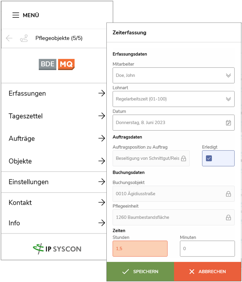 Mit der App zur Betriebsdatenerfassung bietet IP SYSCON eine mobile Offlinelösung zur Erfassung von Leistungen sowie den zugehörigen Zeiten, Materialien, Verbrauchsstoffen oder der Nutzung von Fahrzeugen und Geräten.