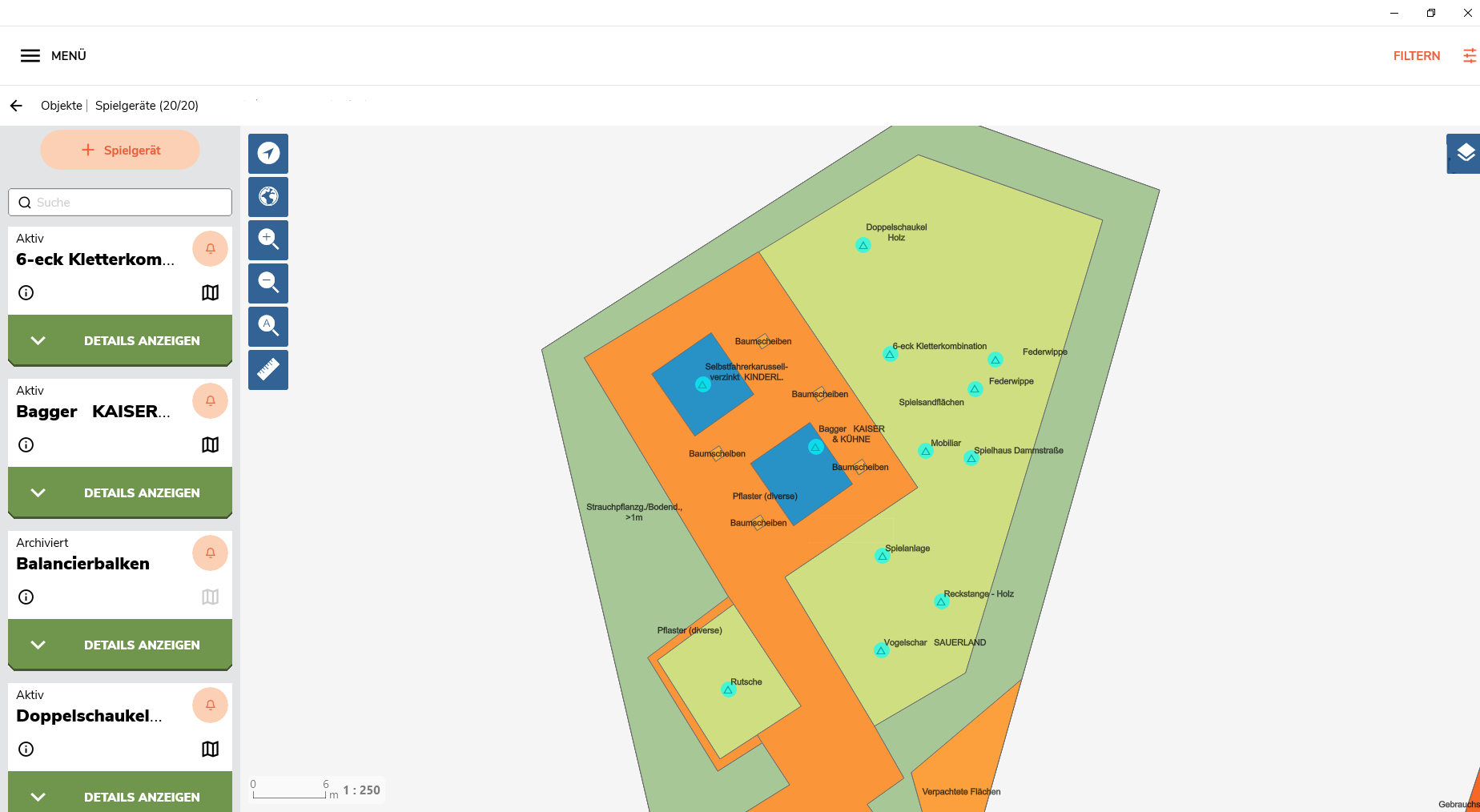 Unser "Spielplatz MQ" ermöglicht die mobile Durchführung von Spielgerätekontrollen über eine komfortable und intuitiv bedienbare Benutzeroberfläche. So können rechtssichere Nachweise der Kontrolle und festgestellten Schäden sowie ein verbessertes Datenmanagement erreicht werden.
