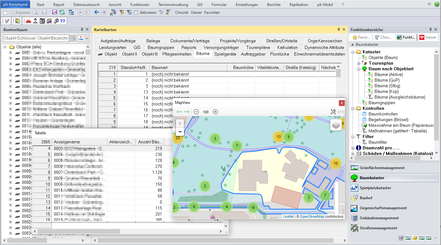 pit-Kommunal Bäume und Spielgeräte ermöglicht die Pflege und Kontrolle sowie Dokumentation öffentlicher Bäume und Spielplätze jederzeit durch mobile Kontrollen.
